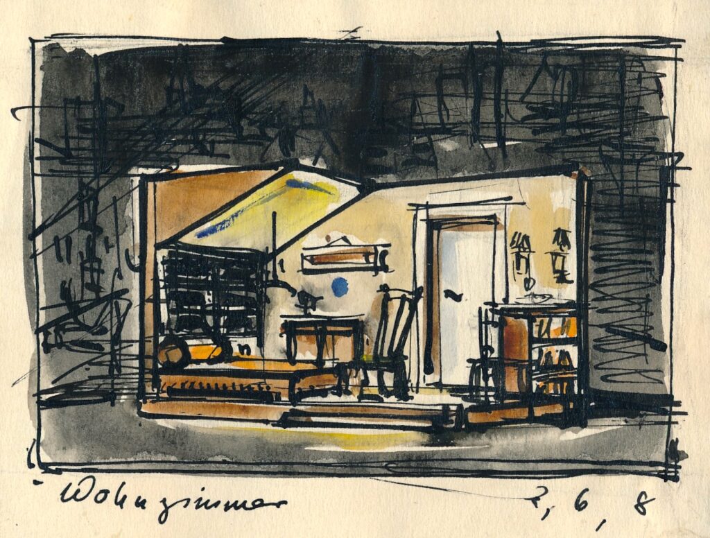 Die Tür ist offen. Ich konnte herein, ein altbekannter Fremder. Guten Morgen. Ich bin der Besuch, der immer ein paar Wochen kam, ein bisschen Ehe probierte. (Zu den Sachen:) Sie erinnern sich? (Geht herum, entdeckt Bekanntes.) Daheim und bewohnt. Von ihr bewohnt. Ihr Weben ganz deutlich hier in der Luft… Was willst du eigentlich, Peter, Lächeln oder Weinen? So oft habe ich mir das vorgestellt. Am ersten Feiertag…