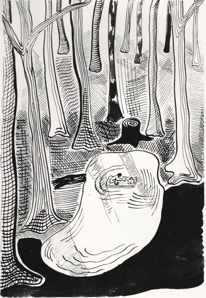 Plötzlich bewegt sich der Knabe. Aus einer Hosentasche holt er ein Taschenmesser, klappt es auf und hält es in der rechten Hand. Mit der linken versucht er, das Kaninchen bei den Löffeln zu packen, offensichtlich, um es zu töten. Aber das Kaninchen weicht ihm so behände aus, dass er es nicht zu greifen bekommt. Der Junge zögert, überlegt; irre, vom Hunger getrieben, jagen die Gedanken durch den Kopf. Dann legt er das Messer auf den Boden und öffnet das Netz. Mit einem Blatt versucht er, das Kaninchen zulocken. Es kommt auch sofort zutraulich angesprungen, butzt mit dem Kopf an des Knaben Knie und isst von dem ihm dargebotenen Blatt. Der Knabe greift schnell nach dem Messer, hebt es, – und er lässt es nach einer kleinen Weile wieder sinken. Das Kaninchen verfolgt kauend und ohne Argwohn jede Bewegung des Jungen. Der klappt nun das Messer zu, steckt es ein und beginnt, mit dem Kaninchen die wenigen Blätter zuteilen.