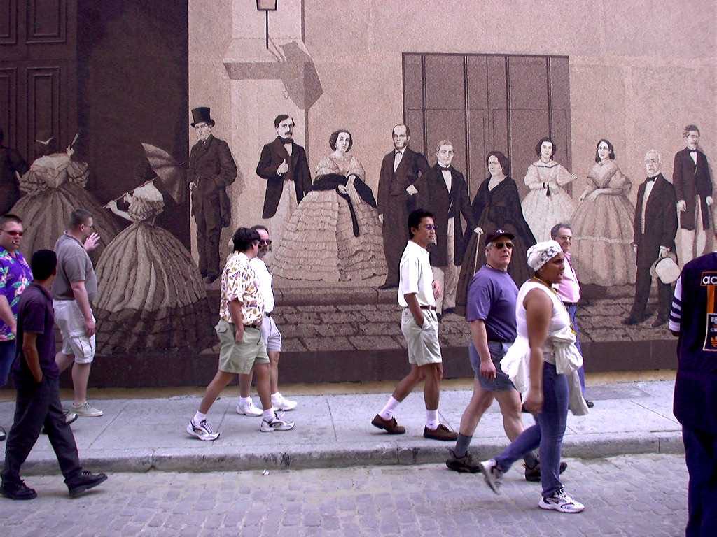 L’Avana, in particolare l’Avana Vieja è in fermento, si lavora dappertutto. Nella Via Mercaderes vicino alla Catèdral hanno appena finito un bellissimo murales che rappresenta i personaggi storici più importanti della città. Vale la pena recarcisi per una foto contraddittoria e surreale. E intorno alla Plaza Vieja si sta restaurando un intero quartiere con i finanziamenti dell’ONU – l’Avana è stata dichiarata patrimonio artistico dell’umanità. Improvvisamente siamo in un altro mondo. C’è anche Benetton. L’Obispo, la via Condotti della città, è tutto un martellare, battere, tutti lavori eseguiti a mano, ed è una questione di tempo che assomiglierà davvero a Via Montenapoleone. Per ora è un caos, tanta gente di ogni genere, più negozi che in qualsiasi altra strada della città, alcuni assurdi, buche, tante buche, mucchi di sabbia, un pavimento di marmo rosso appena finito dentro un negozio, mancano le vetrate, donne in fouseau fuxia scintillante con sotto messa in bella mostra la targhetta, ragazzini che giocano, stranieri che cercano e non trovano, negozi statali dove si paga in dollari e che sanno ancora di piano quinquennale ed economia pianificata. Le vecchie dalla lacrima facile che ti chiedono l’elemosina.