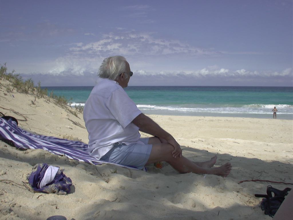 Mentre noi ci divertivamo sulla spiaggia di Vajadero, facendo bagni a iosa tra le calde onde verdi caraibiche, Peter si sdraiò sotto una palma e lì rimase, immobile. Con camicia celeste e bermuda, entrambi ampi e dotati di molte tasche in cui riporre portafoglio, occhiali vari, carta e penna e, ovviamente, il registratore, restava sdraiato, le mani intrecciate sulla pancia con sorrisetto felice di fronte alle nuove prospettive di Ferdinand e Susanne giramondi.